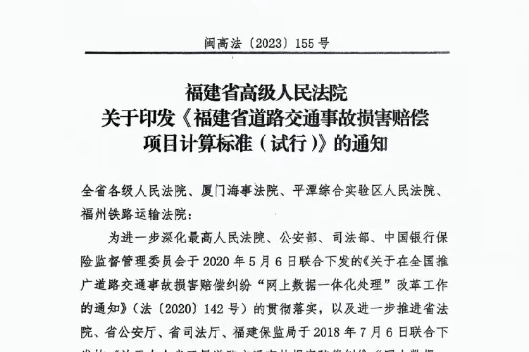 福州律師整理:最新2024年福建省交通事故人身損害賠償標(biāo)準(zhǔn)(含計(jì)算依據(jù)) 交賠人損, 辦案數(shù)據(jù), 地方法規(guī), 福州律師辦案必備發(fā)布者 福州律師網(wǎng)2024年3月5日根據(jù)國家統(tǒng)計(jì)局福建調(diào)查總隊(duì)于2024年1月18日公布的2023年度福建居民人均可支配收入數(shù)據(jù),結(jié)合《最高人民法院關(guān)于審理詳情